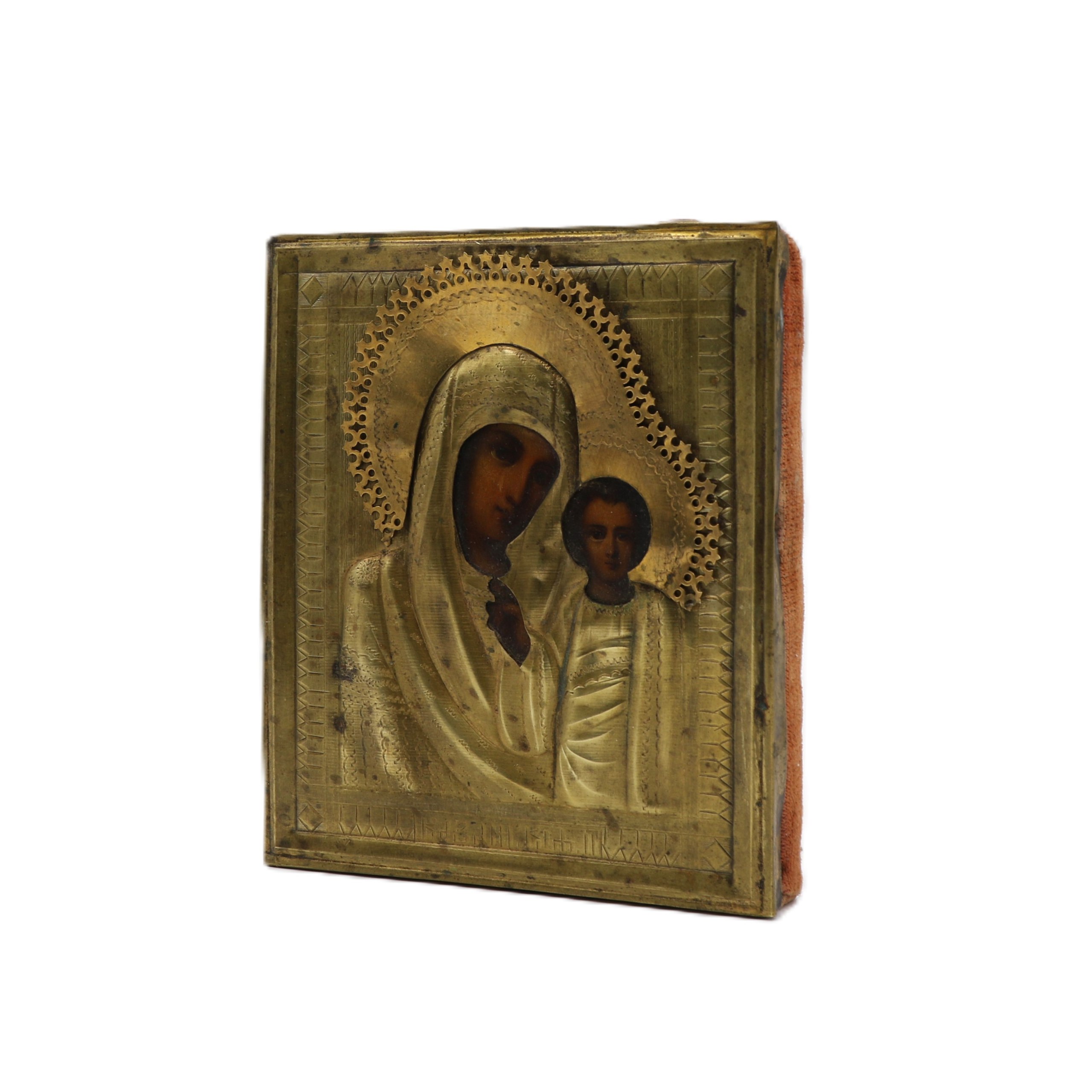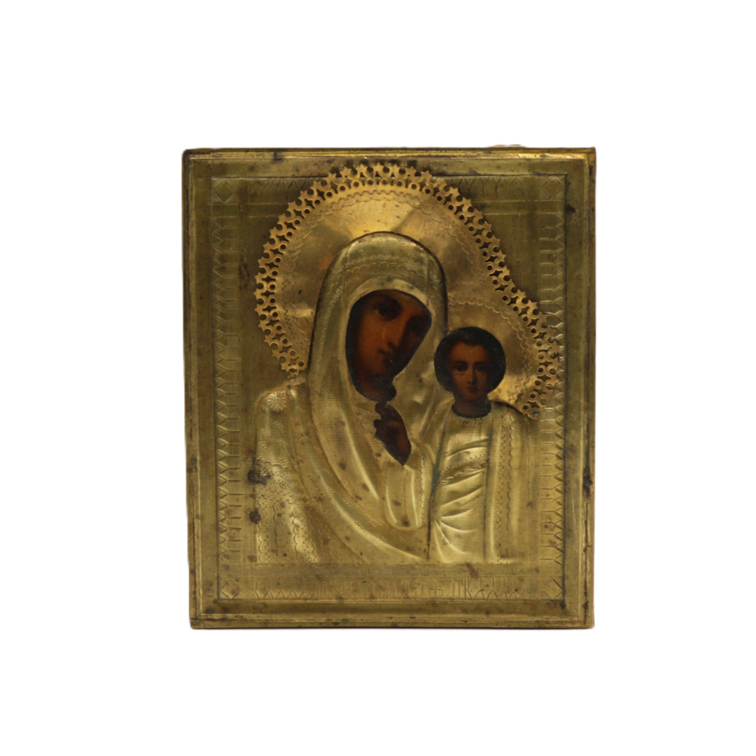 19 век. Размер иконы 11*13 см. Липа, оклад латунь