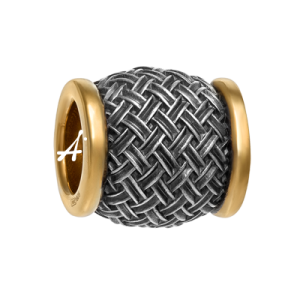Бусина выполнена в традиционном русском стиле. Ее украшает плетеный орнамент — один из самых распространенных мотивов в русском орнаментальном искусстве.