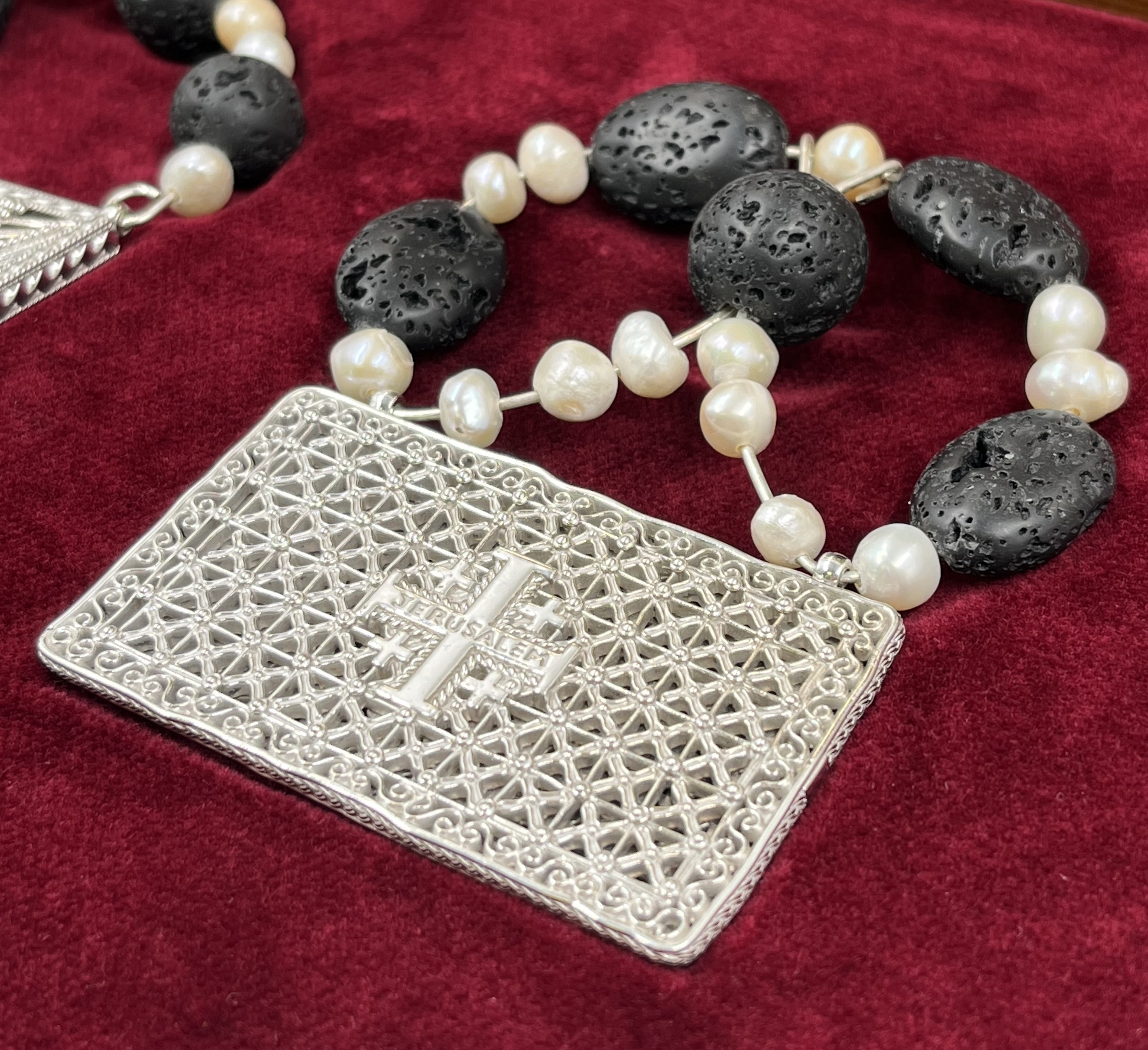 К каждой из этих пластин на серебряной нити подвешены бусины.