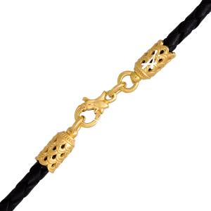 Шнур для ношения нательного креста сплетен из натуральной телячьей кожи глубокой окраски. Он не пачкает одежду и устойчив к воде. Застежка-карабин надежно крепится к шнуру с помощью винтов без использования клея. Подобный крепеж долговечен и легко разбирается самостоятельно, что дает возможность продеть шнур практически в любое ушко.