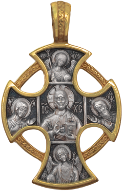 На дугах, соединяющих концы креста, – начало тропаря Честному Кресту: Сп7си2, гDи, лю1ди тво‰, и3 бл7гослови2 достоsніе твоE.