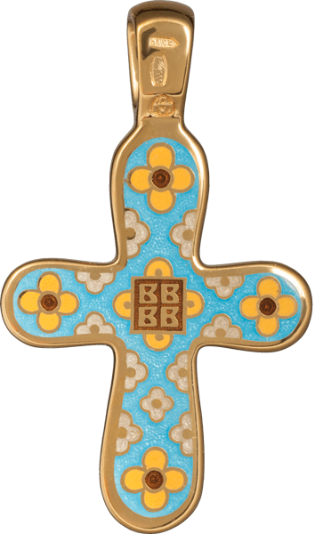 На обороте креста, в продолжение темы восстановления утраченного Рая, изображен цветочный орнамент на белом фоне, а в средокрестии – криптограмма ВВВВ, понимаемая как «возвращение вечное верных в Рай». Существует и другой вариант ее расшифровки – «Велие веселие в него верующих».