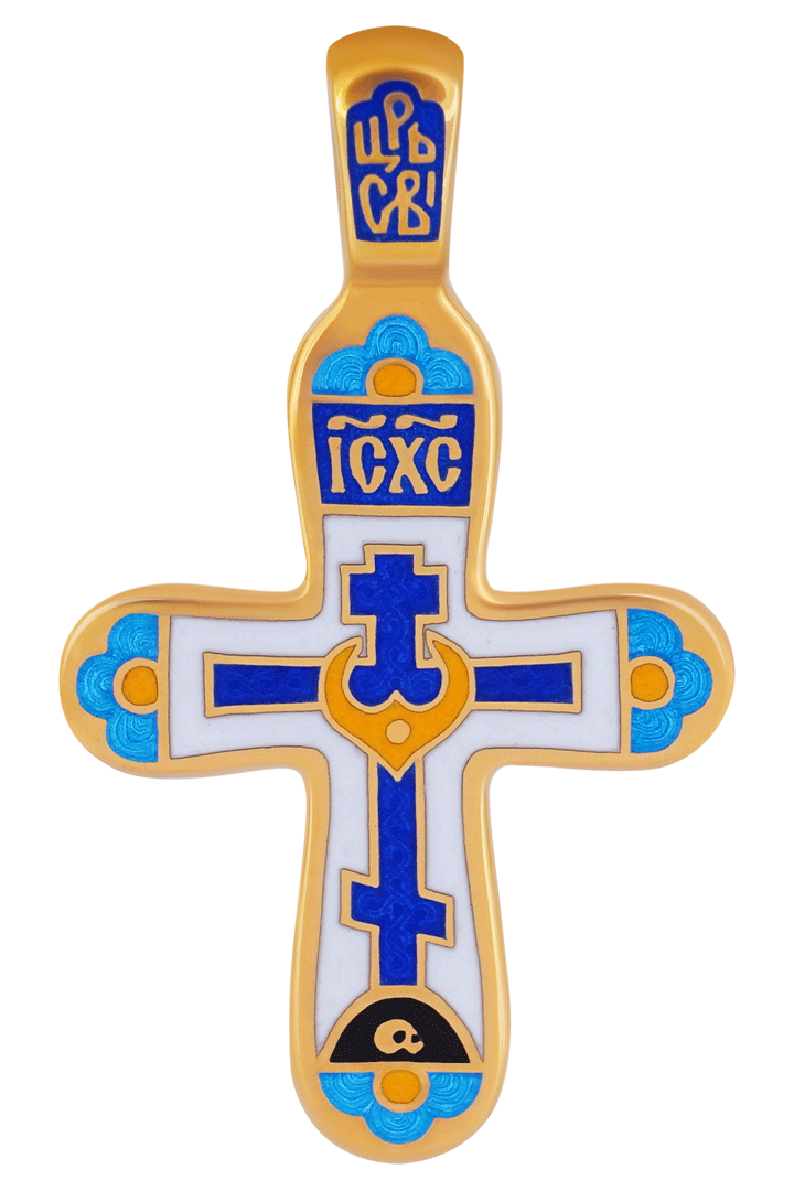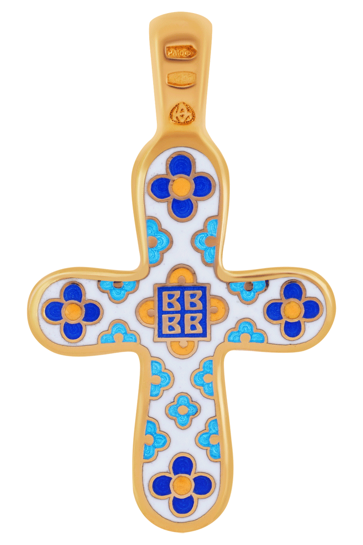 Белый фон, являющийся в иконописи символом Рая, на нагрудных крестах имеет то же значение и соответствует широко распространенной криптограмме МЛРБ (Место лобно Рай бысть), говорящей о восстановлении утраченного Рая. Другие цвета эмали также использованы в соответствии с христианской символикой, где синий – цвет тайны, Божественной непостижимости, вечности, истины, откровения, мудрости, цвет апостольских одежд; зеленый – цвет весны и растительности, поэтому означает победу жизни над смертью и Вечную Жизнь, дарованную Спасителем, символизирует Христа как Жизнедавца и Крест как Древо Жизни; красный – цвет Небесного очищающего огня, цвет животворного тепла, и в этом случае – символ жизни, цвет крови, поэтому является символом жертвы и Пасхи; желтый или золотой – образ нетварного Божественного света – абсолютной метафоры Бога: «Бог есть свет и нет в нем никакой тьмы» (1. Иоанна 1.5).