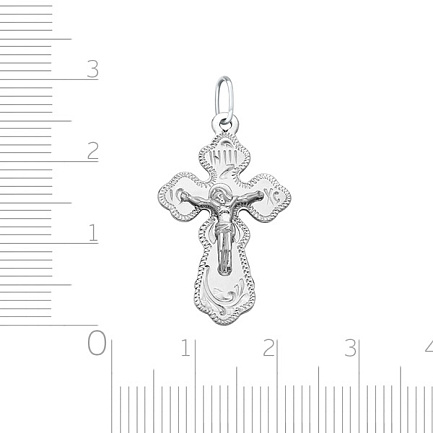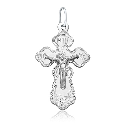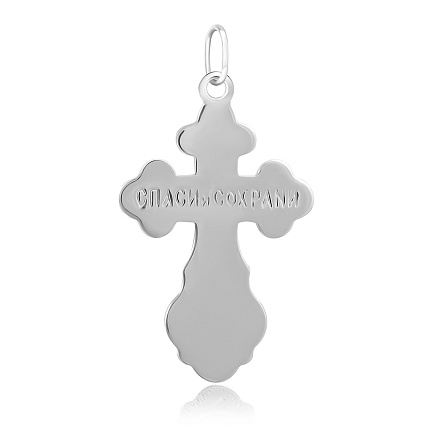 Небольшой изящный крест из белого золота. На лицевой стороне изображено Распятие Господа Иисуса Христа. На оборотной стороне оберегающая надпись "Спаси и сохрани". Соответствует канонам и изготовлено по благословению.<br><p><strong>Состав</strong>: Золото Au 585</p>