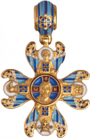 в центре расположен круг с четырехконечным крестом и надписями І&С Х&С НИКА (Иисус Христос побеждает).На концах балок креста расположены меньшие круги с аналогичными крестами.