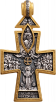 V в. на дверях церкви св. Сабины в Риме, где над головой стоящей Богородицы первоверховные апостолы Петр и Павел держат крест в круге. В более поздних византийских памятниках, где художники не ограничивались рамками исторического факта, особо выделенный образ Божией Матери также мог олицетворять собой Церковь. Тем более что праздник Вознесения – и это мы стремимся подчеркнуть в своей работе – является еще и обетованием Церкви Христовой, которой Господь обещает послать Духа Святого и в которой Он Сам будет пребывать неотступно. И конечно же, присутствующий на иконе праздника образ молящейся Богородицы, уже стяжавшей Духа Святого и ставшей «невместимого Бога вместилищем», воспринимается и как символический образ Церкви.Особую сложность в иконах Вознесения составляла передача факта таинственного присутствия в мире возносящегося во славе Христа. Для этого использовали различные символические изображения: крест в круге, как на упомянутом рельефе V в., или следы ног Христа на лещадках гор, как в русских иконах XVII в. В нашей работе присутствие Господа выражается двумя способами. Литургически, через слова кондака праздника Вознесения: Ѓзъ є4смь съ вaми, и3 никт0же на вы2 (гл. 6), написанные в основании креста, и символически, через образ креста в круге, помещенный в геометрический центр нагрудного креста. Напомним, что средокрестие в нагрудных крестах всегда понимается как центр мира, место Господа, а крест в круге обозначает Христа во славе. Таким образом, композиция Вознесения на лицевой стороне нагрудного креста, кроме иллюстрации евангельского события через символические образы Богородицы-Церкви и креста в круге, говорит нам об обетовании Христовой Церкви, где главой остается таинственно присутствующий в мире Спаситель, а также показывает нам основу будущей Церкви – двенадцать избранных учеников, которые являются свидетелями Вознесения Господня и Его обетования.