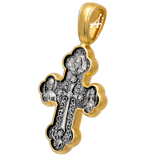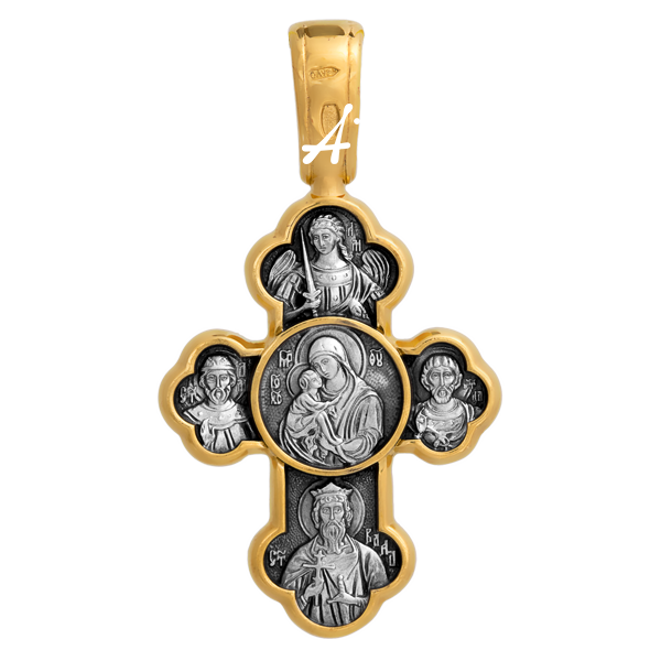 Осеняет образы святых на кресте Архангел Михаил, грозный враг зла, Небесный Воевода, покровитель христианских воинов как при жизни, так и после смерти. Его крылатая фигура нередко украшала княжеские шлемы, и именно ему в древности посвящались кладбищенские церкви. В честь Архангела Михаила освящен и Архангельский собор в Кремле: усыпальница московских князей и русских царей. Память Архистратига Михаила совершается 21 ноября и 19 сентября.
