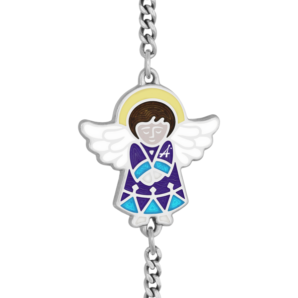 На браслете с панцирной цепью на обратной стороне написана Материнская молитва Ангелу Хранителю: «Святый Ангеле, Хранителю чада моего, покрый его покровом твоим от стрел демона и сохрани сердце его во ангельской чистоте. Аминь».