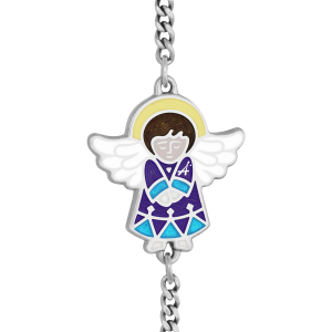 Такой браслет можно преподнести молодой маме как подарок на рождение малыша или на его крестины. Можно подарить его, также, самому ребенку. Изделие выпускается в двух вариантах: на рождение дочери — с длинноволосым ангелочком в одеждах розовых и красных тонов, и на рождение сына — здесь у ангелочка короткие волосы, и он одет в тунику сине-голубых оттенков. Браслет выпускается в двух вариантах.