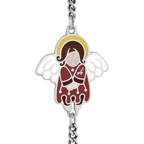 На браслете с панцирной цепью на обратной стороне написана Материнская молитва Ангелу Хранителю: «Святый Ангеле, Хранителю чада моего, покрый его покровом твоим от стрел демона и сохрани сердце его во ангельской чистоте. Аминь».