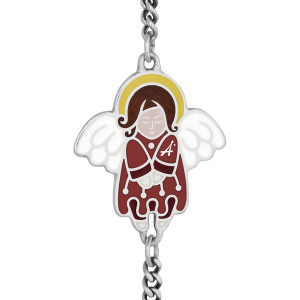 Такой браслет можно преподнести молодой маме как подарок на рождение малыша или на его крестины. Можно подарить его, также, самому ребенку. Изделие выпускается в двух вариантах: на рождение дочери — с длинноволосым ангелочком в одеждах розовых и красных тонов, и на рождение сына — здесь у ангелочка короткие волосы, и он одет в тунику сине-голубых оттенков. Браслет выпускается в двух вариантах.