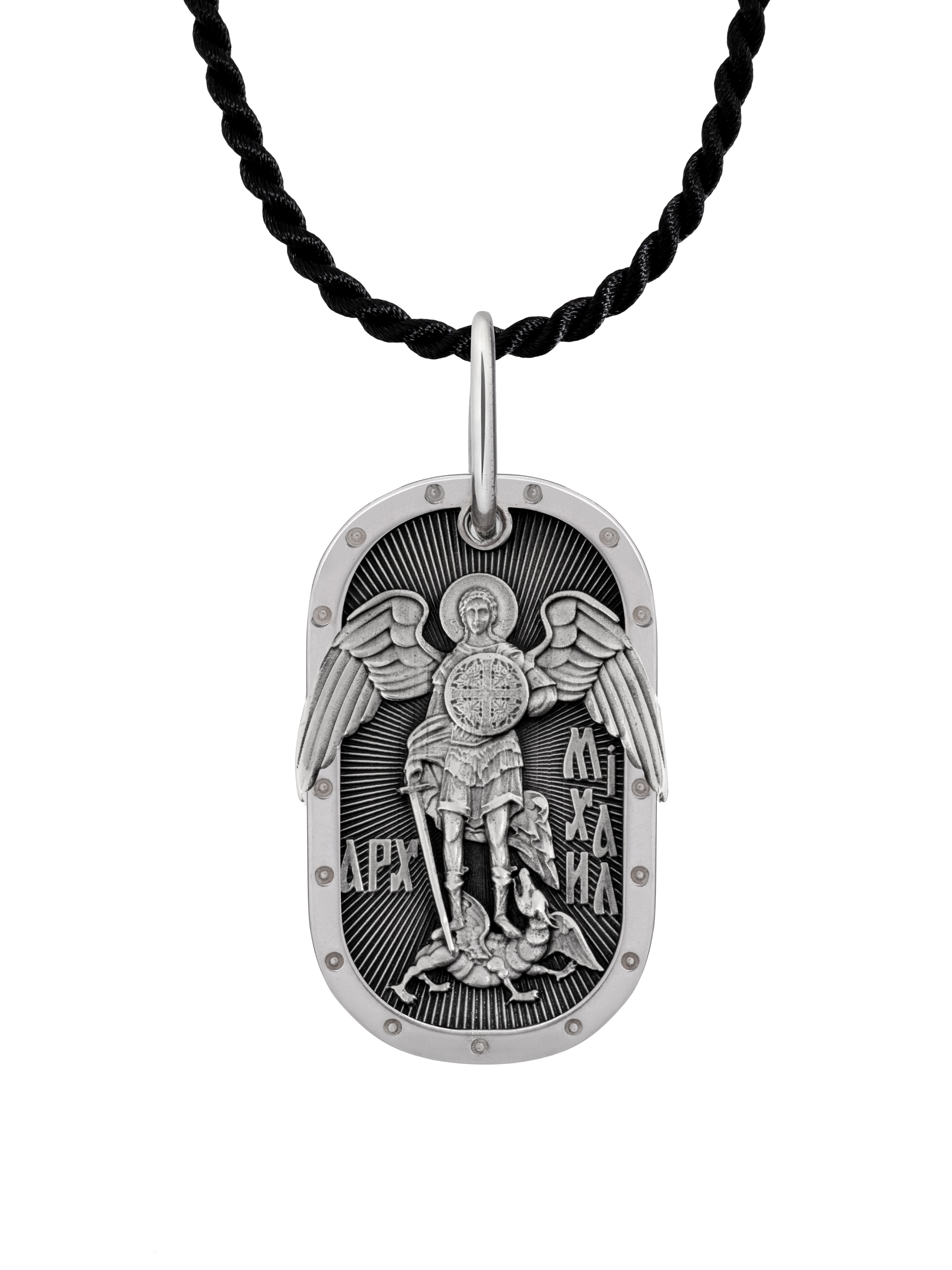 Подвеска медальон с изображением Архангела Михаила. Архистратиг Михаил является защитником веры и выступает против всякого зла. На оборотной стороне молитва ""Отче наш"". Соответствует канонам и изготовлено по благословению.