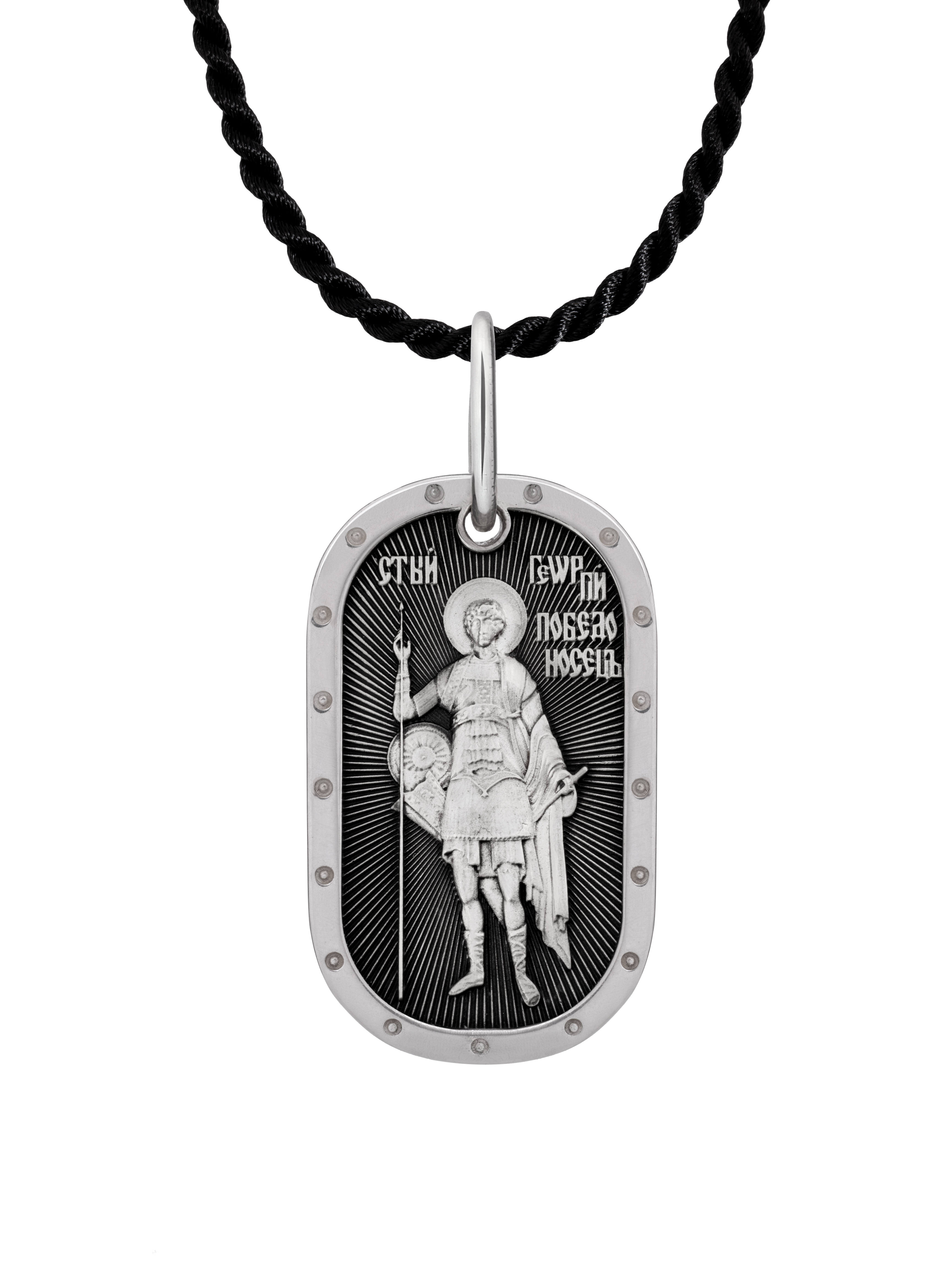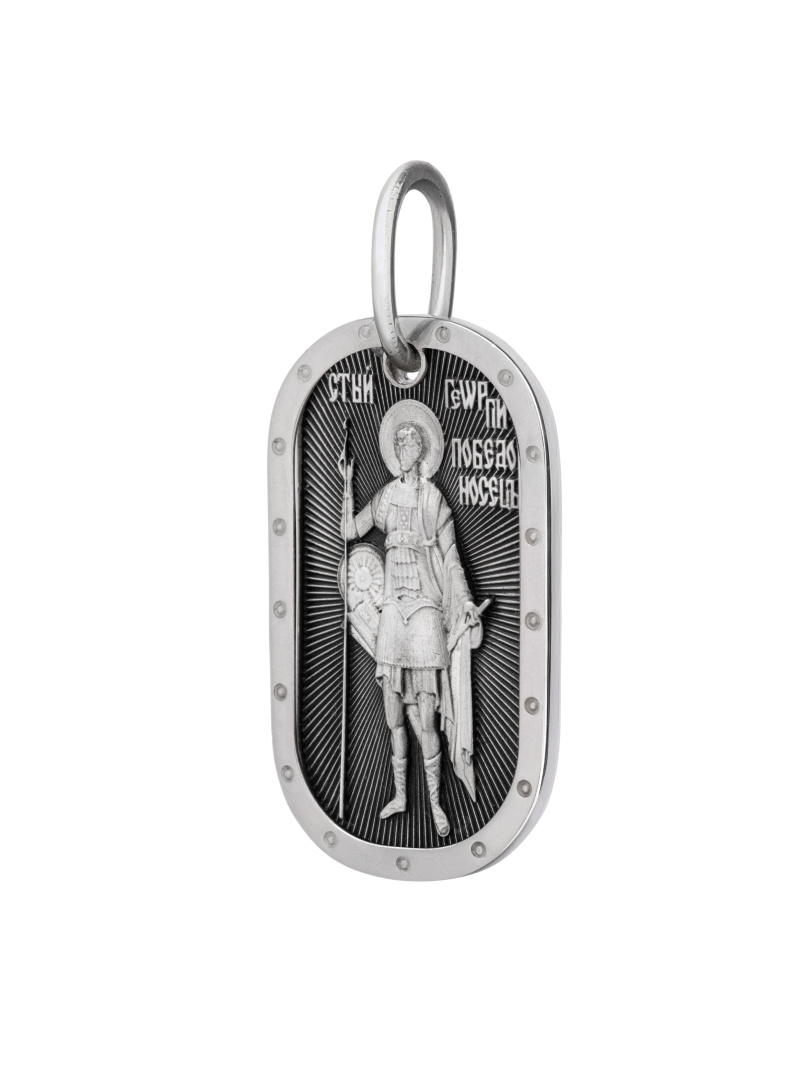Георгий Победоносец стал символом Русского государства, русского воинства. Образ защитника и спасителя слабых и обездоленных, христианского мученика, не боящегося положить душу «за други своя», всегда был близок русскому человеку. России. На оборотной стороне молитва ""Отче наш"". Соответствует канонам и изготовлено по благословению.