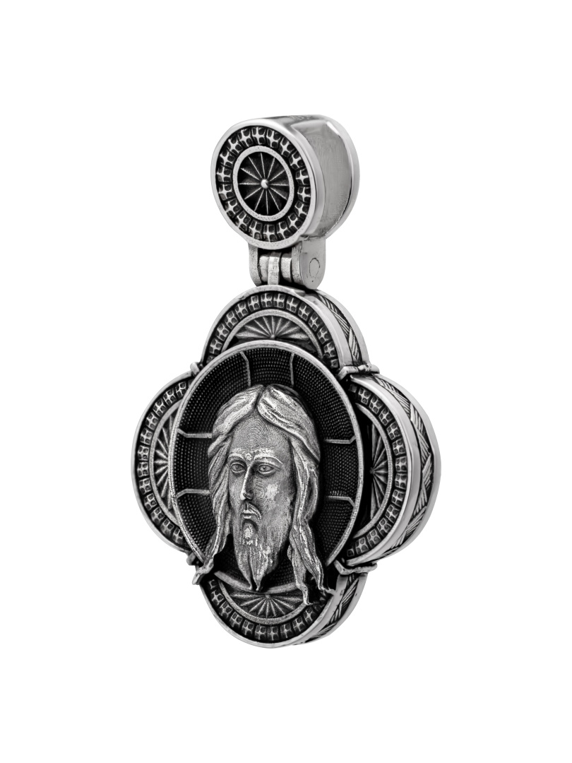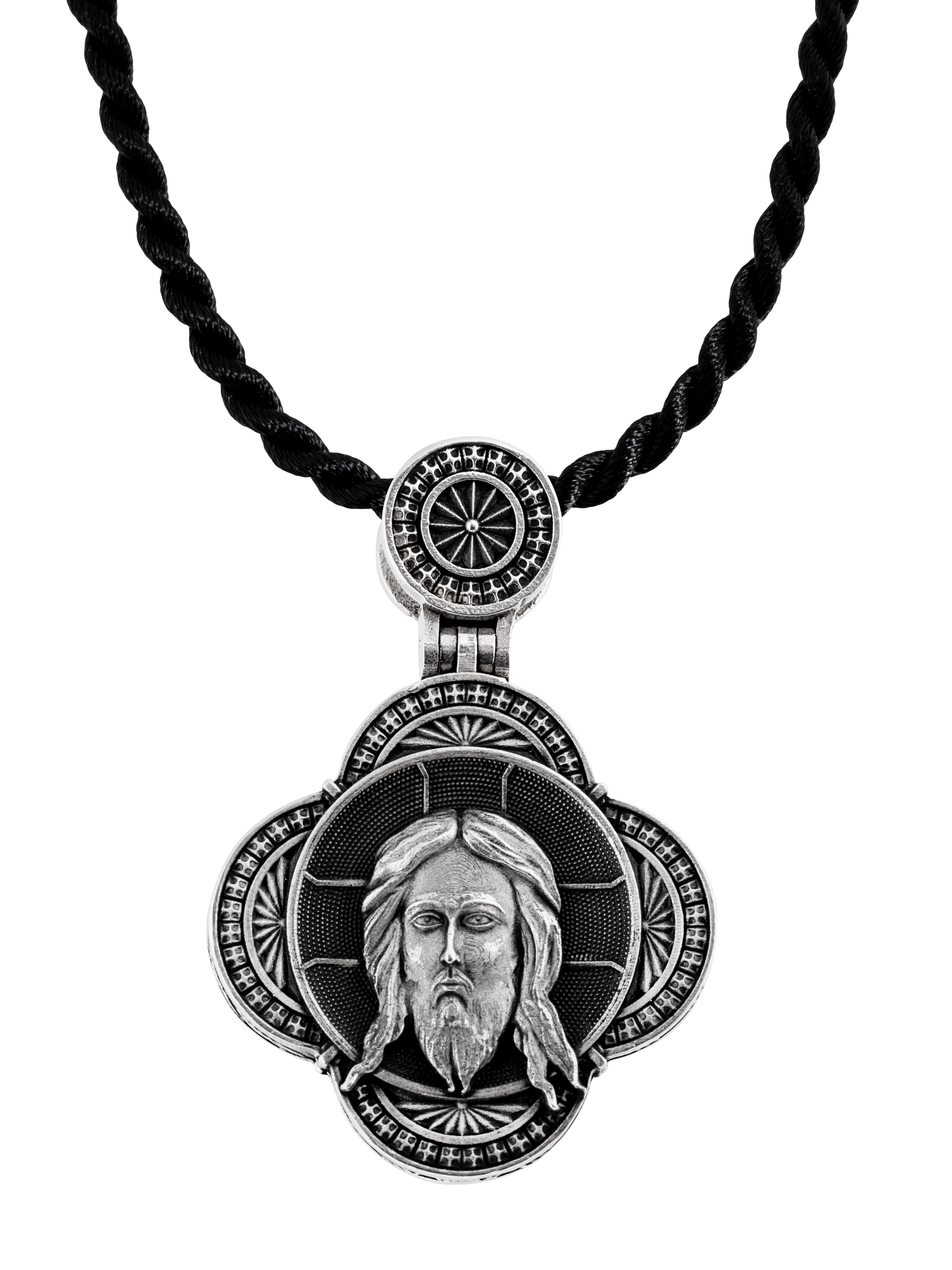 Подвеска представляет собой медальон ""Святый Убрус"". На лицевой стороне изображен Святый Убрус - нерукотворный Обрах Спасителя. На оборотной стороне молитва ""Отче Наш"".Соответствует канонам и изготовлено по благословению.