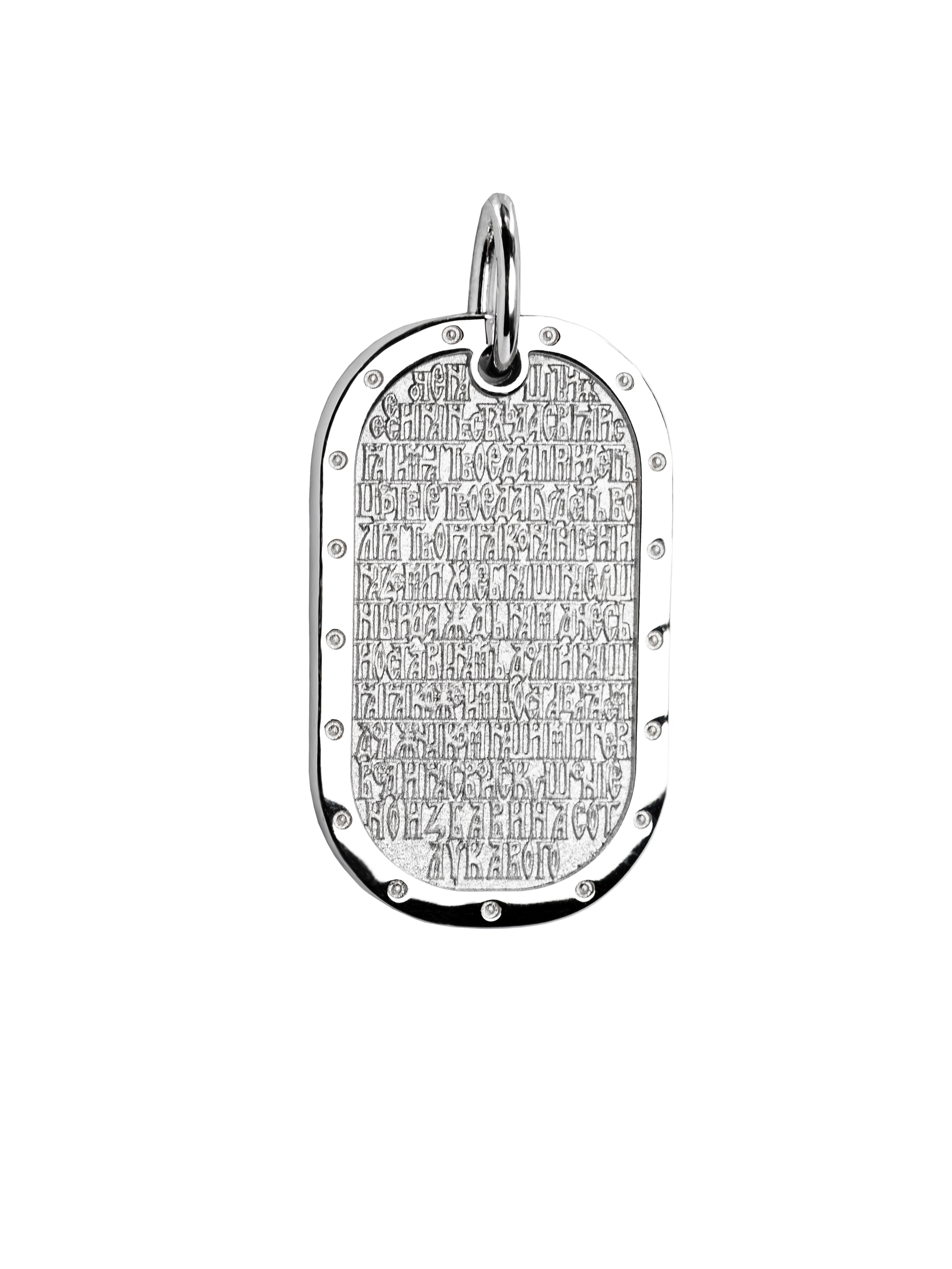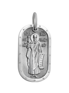 Медальон из серебра с изображением Св. Равн. Князя Владимира. На оборотной стороне- молитва Отче Наш. Размер: высота 37 мм с ушком, ширина 18 мм. Состав: Серебро 925 пробы с родированным покрытием