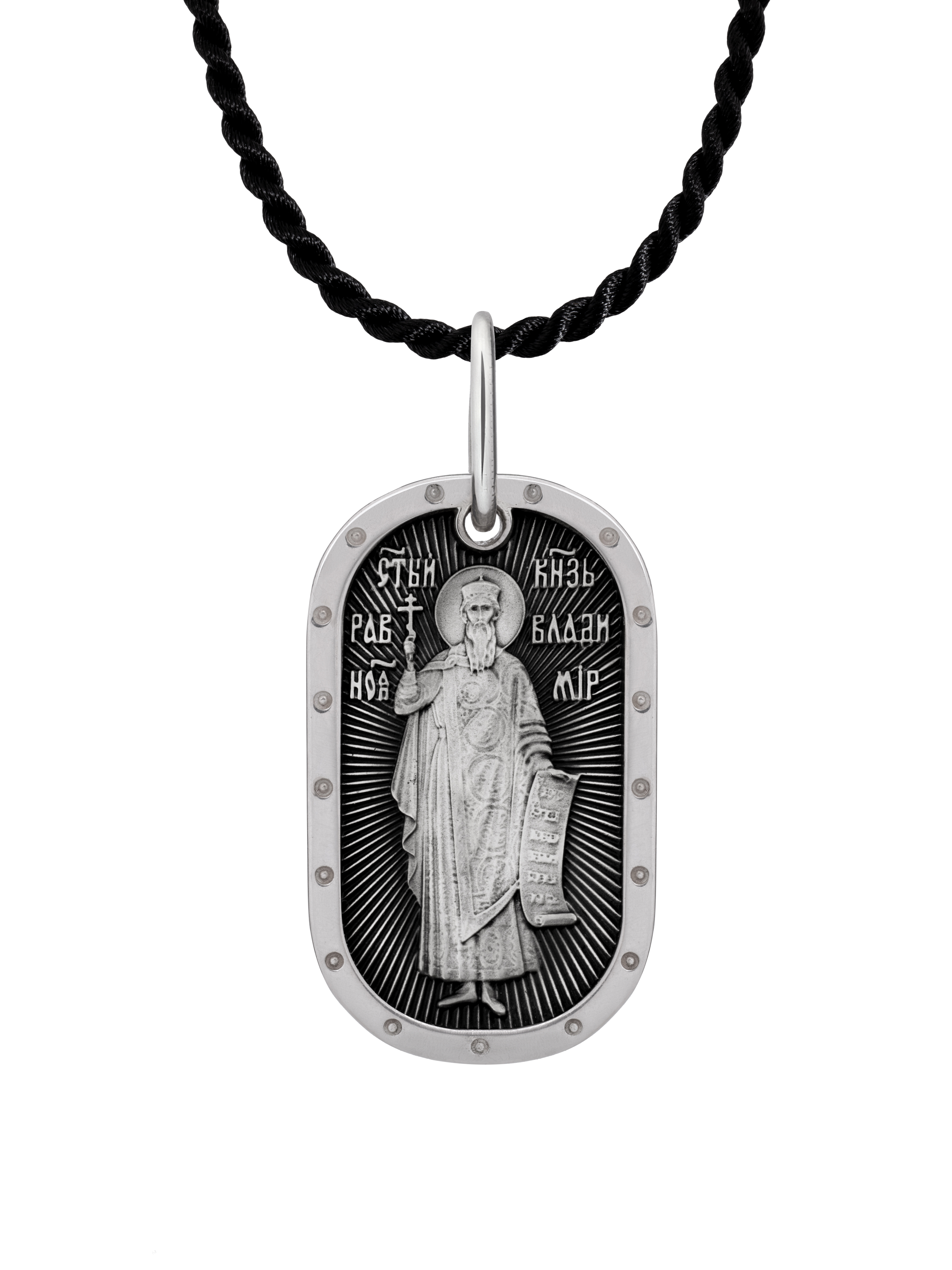 Подвеска-медальон с изображением князя Владимира. Равноапостольный князь крестил Русь в 988 году. На оборотной стороне молитва ""Отче наш"". Соответствует канонам и изготовлено по благословению.