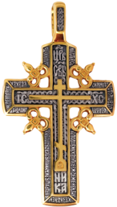 На лицевой стороне изображен Голгофский Крест без распятия с орудиями страстей и прославляющие Господа надписи: Цр7ь Сл7вы, І&С Х&С НИКА.