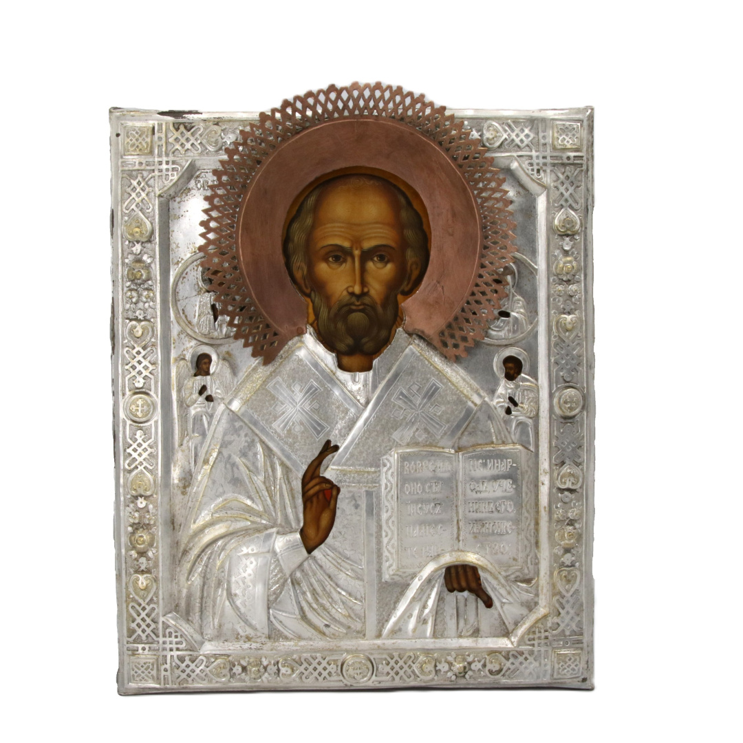 19 век. Оклад латунь. Размер иконы 26*31 см. Липа