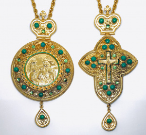 Двойник "Троица" латунь, позолота, эмаль, филигрань, кварц Изделие продается как в комплекте так и раздельно, уточняйте у менеджеров.