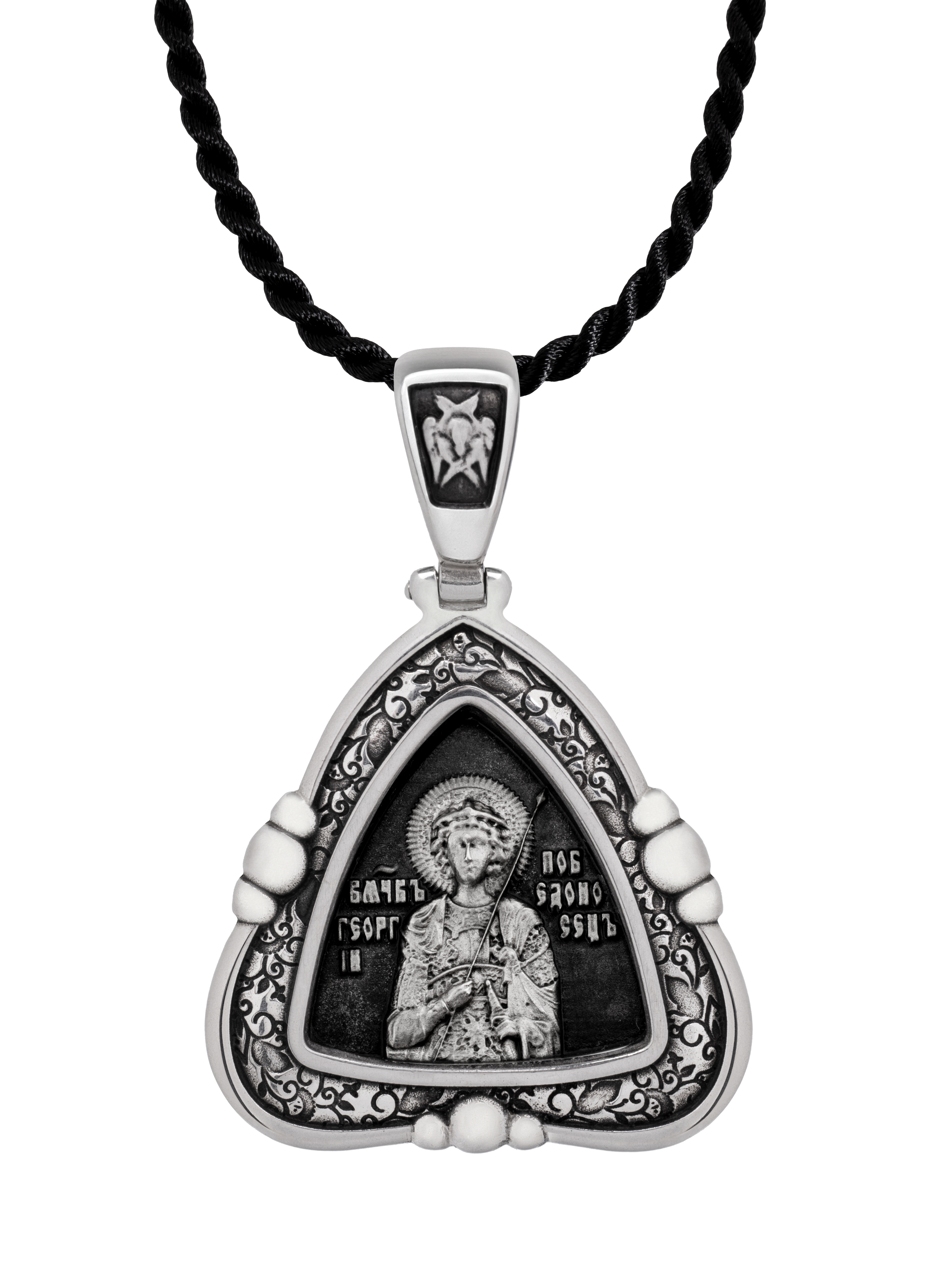 Георгий Победоносец стал символом Русского государства, русского воинства. Образ защитника и спасителя слабых и обездоленных, христианского мученика, не боящегося положить душу «за други своя», всегда был близок русскому человеку. России. На оборотной стороне молитва""Святый великомучениче Георгие моли Бога о мне"". Соответствует канонам и изготовлено по благословению.