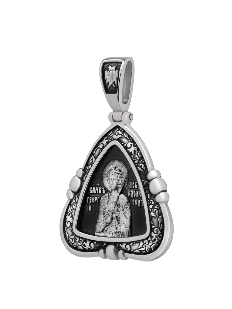 Подвеска представляет собой образок великомученика Георгия Победоносца.