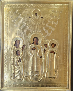 19 век. Размер иконы 17,7*22 см. Оклад латунь