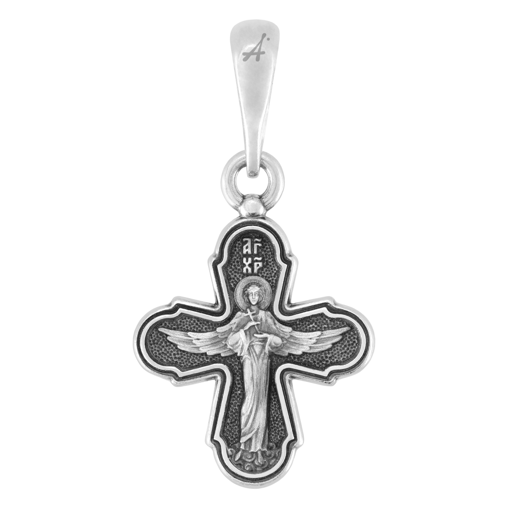 Оборотная сторона креста посвящена Ангелу Хранителю. Его фигура изображена в полный рост. Ангел дается человеку при Крещении, чтобы всю жизнь заботиться о нем: беречь от зла и греха, вразумлять на добрые дела. И после смерти Ангел бережет человеческую душу, становясь проводником в загробном мире. Важно всегда молиться своему Ангелу Хранителю, помнить о нем, ведь без искренней просьбы самого человека, Ангел не может его спасти.
