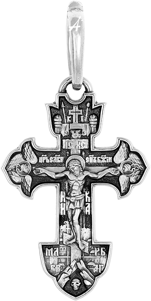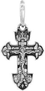 Крест традиционной якорной формы возводит нас к древнерусским крестам 13–14 веков. Якорь — это библейский символ надежды. На лицевой стороне креста изображен выразительный образ Распятия Христова: Спаситель предстает на восьмиконечном кресте, а высокоточное литье прекрасно имитирует древесину. Распятие — торжественный, жизнеутверждающий образ спасения всего человечества. Поэтому Спаситель словно парит над миром на кресте, обнимая его распростертыми руками.
