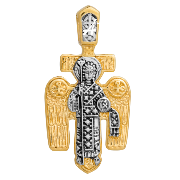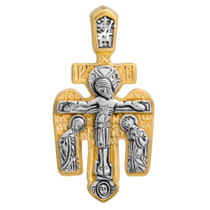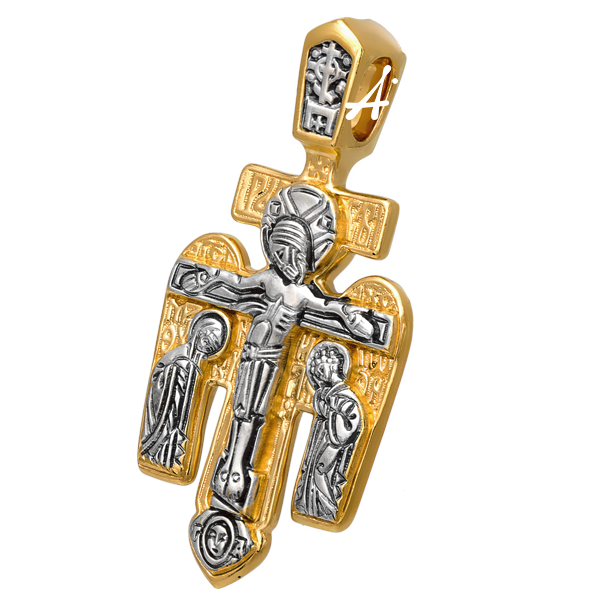 Небольшой крест с Голгофой на лицевой стороне и образом Архангела Михаила на обороте формой напоминает знаменитый крест XVII века работы русских мастеров. Предстоящие Распятому Христу Богородица и апостол Иоанн Богослов на обороте креста становятся крыльями самого могучего из всех ангелов Архистратига Михаила. Это символический образ духовного величия Пречистой Матери Христа и самого Его любимого ученика апостола и евангелиста Иоанна.