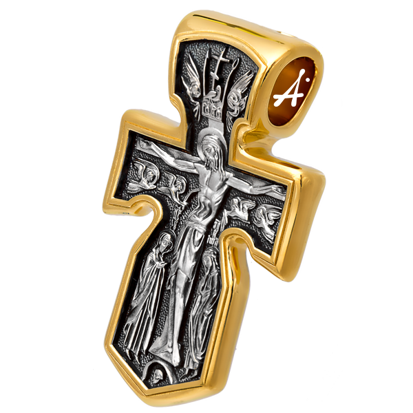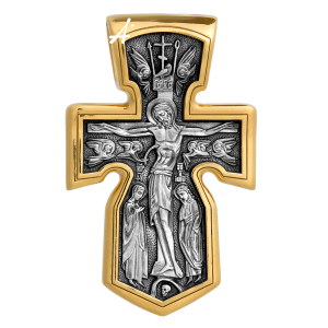 Образ Господа Иисуса Христа – главный на каждом кресте. Именно ко Христу, сошедшему на землю ради нашего спасения, возносятся все молитвы. Пресвятая Богородица, ангелы и святые – помощники Господа в деле спасения и заступники за людей перед Богом. На лицевой стороне изображена икона Распятия Христа – образ жертвы, принесенной Господом за грехи людей. «Оружием великим Христовым» именует Церковь крест, потому что, претерпев страдания и умерев, Господь победил смерть и лишил дьявола его власти над миром. Древний вид Распятия являет образ вознесенного на Крест Сына Божия, распростершего руки в объятии, которыми Он словно стремится охватить мир. Сохраняя образ страдания Христа, православное Распятие в то же время удивительно точно передает догматическую глубину его смысла. Тело Господа не висит, а торжественно покоится на Кресте. Христос, распятый и умерший, удивительным образом жив в самой смерти. И, глядя на православное Распятие, мы всегда знаем, что Христос не только умер за грехи людей, но Он и воскрес!