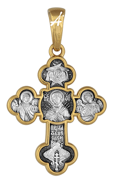 На обороте в окружении предстоящих ангелов помещен образ чудотворной иконы Божией Матери «Семистрельная». По своему иконографическому решению она близка к иконе «Умягчение злых сердец». Обе они написаны на основании Евангельского повествования о Сретении Господнем; часто и ту и другую называют «Симеоново проречение».