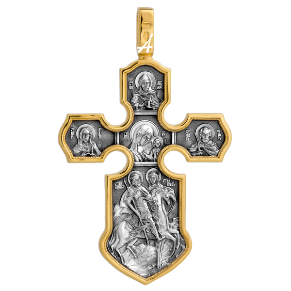 Большой нательный крест, по форме напоминающий якорь (древнейший образ креста, символ надежды и спасения), украшают иконы Христа, Богородицы и святых, прославившихся своей борьбой с нечистой силой, колдунами, иноверцами и со всяким злом вообще.