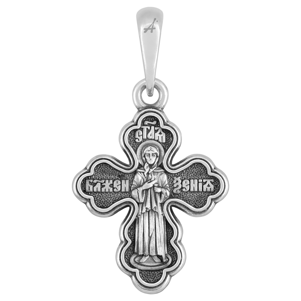 На лицевой стороне помещено Распятие Христово, а на обороте изображена святая Ксения Петербургская.