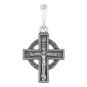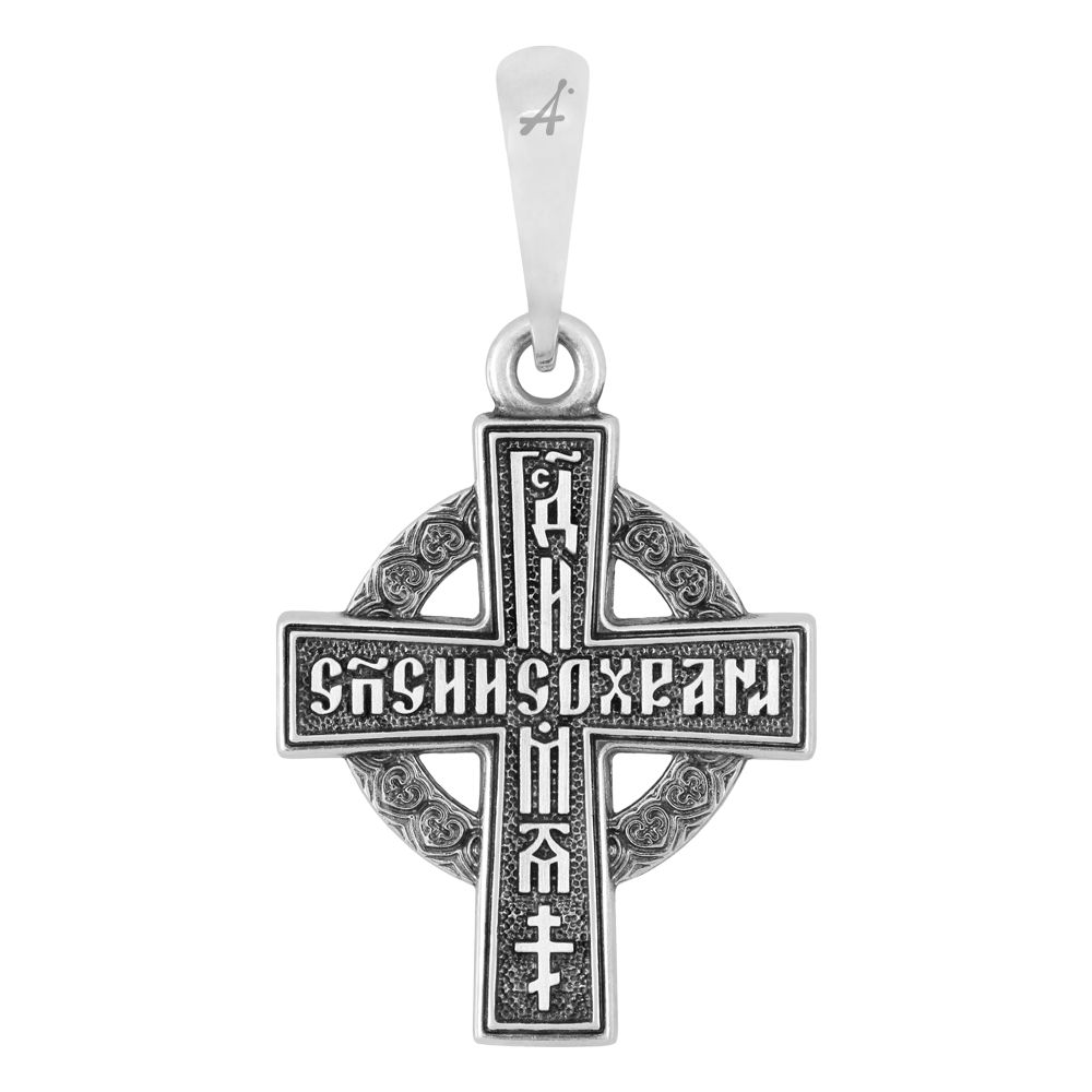 Крест с кругом сочетает в себе два символа — спасения и вечности. Он напоминает солнце, что отсылает к именованию Христа Солнцем Правды. По серебряному кругу идет повторяющийся орнамент — крест Христов в сердце.