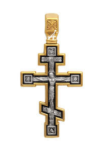 Строгий крест традиционной восьмиконечной формы издревле особенно почитается в Православной Церкви, потому что он наиболее полно показывает образ Распятия. Основной четырехконечный крест в восьмиконечном кресте пересекается дополнительно двумя короткими перекладинами. В верхней части помещена табличка с надписью обвинения против Иисуса Христа: «Иисус Назорей Царь Иудейский» (IНЦI). Подножие, изображенное внизу, наклонено в левую сторону: оно символизирует весы, на чаши которых на Страшном Суде будут полагаться добрые и злые дела людей. Иисус Христос был распят между двумя разбойниками: один из них хулил Господа — и ему подножие указывает вниз, в ад; второй же, напротив, каялся и просил милости — поэтому ему мерило указывает на Царствие Небесное.