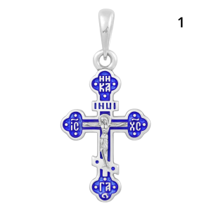 Четырехконечный эмалевый крест выдержан в традициях русских нательных крестов. Он украшен горячей перегородчатой эмалью. Эта древняя техника пришла на Русь из Византии вместе с христианством.