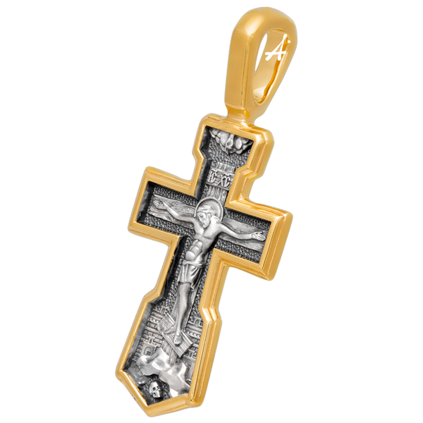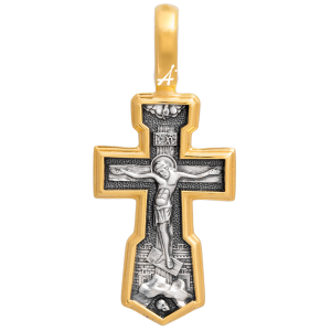 На лицевой стороне креста помещено Распятие – победоносный, величественный образ христианства. Своей искупительной жертвой Господь сделал страшное орудие казни орудием победы над грехом и смертью. Страдания и смерть Христа открыли двери спасения каждому человеку, сделали Рай доступным.