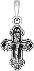 Крест выполнен в традиционной форме, часто встречающейся в древней Руси. Трехлепестковые окончания перекладин символизируют просвещение всех концов земли учением о Святой Троице. На лицевой стороне по традиции помещено Распятие Христов с предстоящими Кресту скорбными образами Богородицы, Марии Магдалины, апостола Иоанна Богослова и Лонгина Сотника. Вверху — Престол Уготованный, на который Христос воссядет в День Своего Второго пришествия для Страшного суда. Иисус Христос на Кресте победил смерть, а Своими страданиями за грехи всего человечества снискал Себе право стать его судьей после окончания всех времен.
