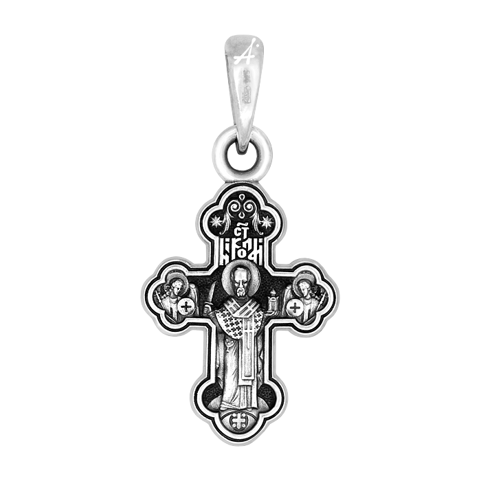 На обороте в центре стоит, молитвенно воздев руки, святитель Николай Чудотворец, окруженный архангелами. Образ святого представлен в известной иконографии «Никола Можайский». Согласно преданию, когда город Можайск был осажден татарами, в воздухе над храмом явился Николай Чудотворец с мечом в одной руке и собором в другой и, напуганный видением, неприятель бежал. Святитель Николай почитается как защитник при нападении вражеской силы, целитель, помощник в торговле и честном предпринимательстве, как устроитель личной жизни. Но особенно его почитают моряки.
