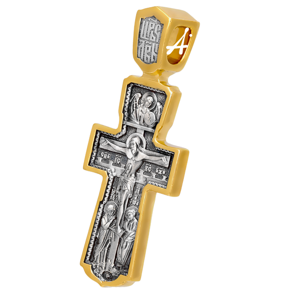С двух сторон от Распятого Спасителя написано: «Иисус Христос Сын Божий». В навершии креста находится икона Ангела Хранителя. В правой руке Ангел держит крест – «меч духовный» в борьбе с грехом и бесами, а в левой – так называемое зерцало с именем Иисуса Христа. Каждый ангел по преданию имеет такое зерцало, чтобы всегда видеть Господа и слышать Его повеления.