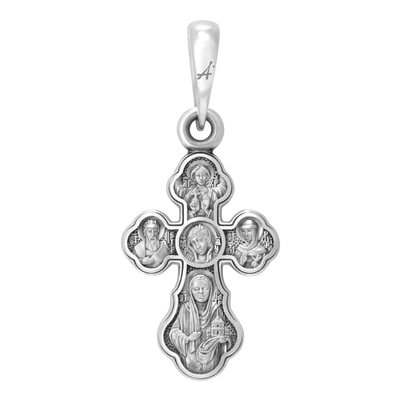 Небольшой, изящный крест выполнен в традиционной русской форме. Каждый из четырех концов перекладин заканчивается трилистником — символом Пресвятой Троицы. Крест посвящен святым, которых традиционно почитают как помощников в обретении семейного счастья, гармонии и мира в доме.