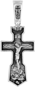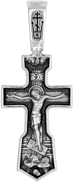 Ушко креста украшено традиционным Голгофским крестом — самым полным схематическим изображением Распятия.