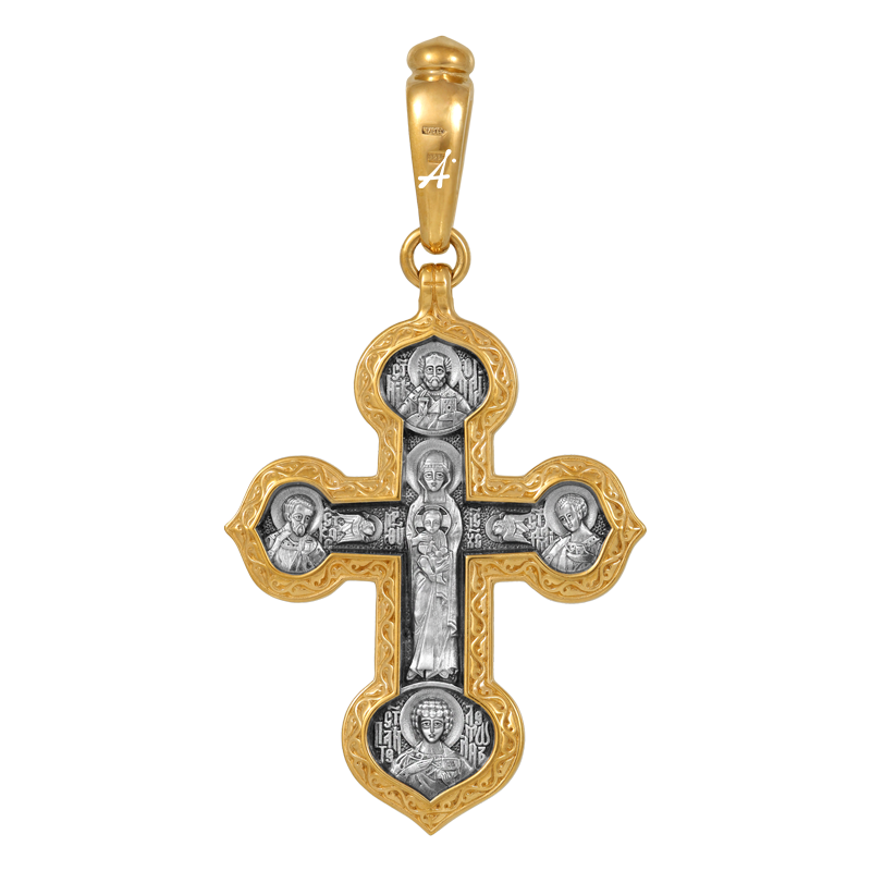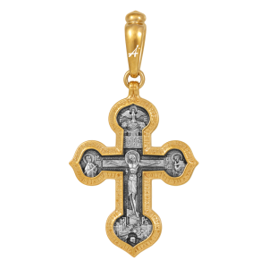 На лицевой стороне креста изображено Распятие Христово с предстоящими Божией Матерью и апостолом Иоанном Богословом. Вокруг — текст молитвы, прославляющей Крест Христов как грозное оружие против всяких темных сил. Ее читают в бесовских напастях, искушениях, в сложных жизненных ситуациях. Она почитается как самая действенная оградительная молитва: