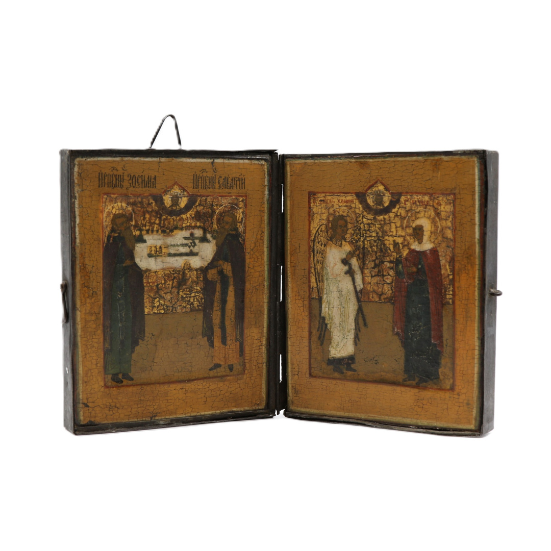 Складень Зосима и Савватий Соловецкие,18 век. Размер 27х16 см