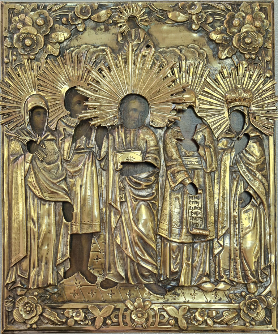 Икона 19 века. Размер 24*29 см. Масло, чеканка, гравировка