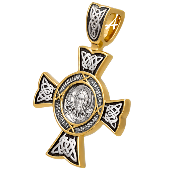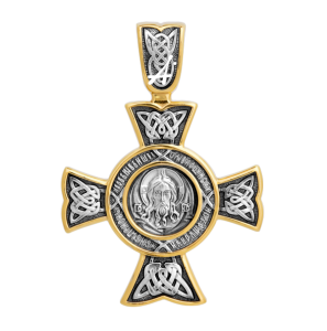 На лицевой стороне равностороннего креста изображен образ Спаса Нерукотворного, на обороте — икона «Чудо Георгия о змие».