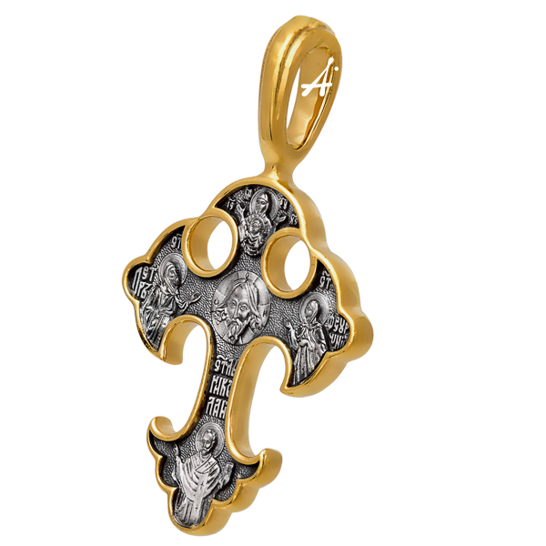 Форма процветшего креста, в которой выполнен этот небольшой нательный крестик, восходит к традициям русских крестов XIV века. Концы его балок «процветают» трехчастными бутонами лилий, олицетворяющими чистоту, святость и любовь. С древности цветок лилии почитался также как символ мира и Божьего благословения. По преданию, именно лилию вручил Пресвятой Деве Марии Архангел Гавриил, возвещая Ей о рождении у Нее Божественного Сына.