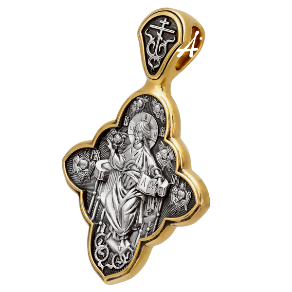 Крест с изображением Господа Иисуса Христа на престоле, окруженного Небесными Силами, является творческой репликой древнего креста-мощевика XIV века, хранящегося в музее Троице-Сергиевой лавры. Образ, изображенный на кресте, – редкое пластическое переложение главной иконы русского высокого иконостаса «Спас в силах». Икону «Спас в силах» специалисты называют настоящим богословским трактатом, раскрывающим тему грядущего Страшного Суда.