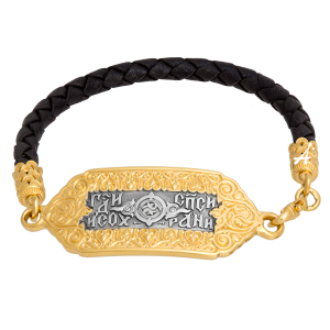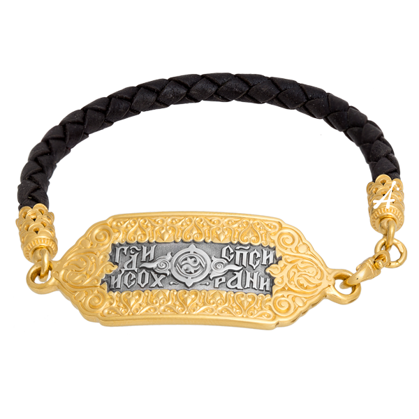 На пластине браслета написаны две главные охранительные молитвы православных христиан. На лицевой стороне, в окружении традиционного русского орнамента, вязью выведено «Господи, спаси и сохрани». На обороте помещены девять стихов Псалма 90 «Живый в помощи Вышняго» — главной охранительной молитвы русского народа. Этот псалом издревле читается верующими при возникновении любой опасности и угрозы, и сегодня его слова спасают очень многих в несчастье и трудных жизненных ситуациях. Иначе не была бы она так почитаема в народе.