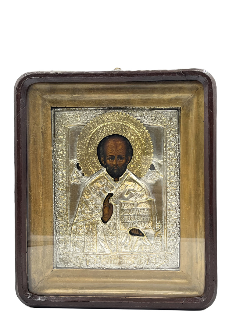 19 век. Размер иконы 17*22 см. Оклад латунь. Липа